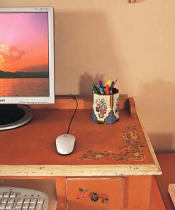Компьютерный стол с 2-мя ящиками и выдвижной подставкой для клавиатуры. Декорирован росписью ручной работы. Возможны другие варианты отделки.