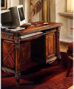 Компьютерный стол, декорированный резьбой. Столешница выполнена в отделке из кожи. Возможны другие варианты отделки