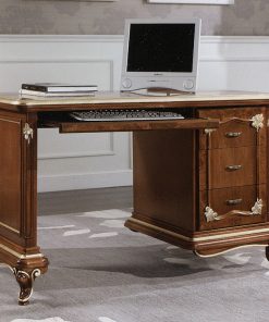 Компьютерный стол с 3 выдвижными ящиками. Декорирован резьбой. Возможны другие варианты отделки.
