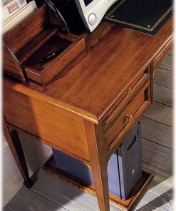Компьютерный стол с 2-мя ящиками, подставкой под процессор и выдвижной подставкой под клавиатуру, столешница выполнена в отделке из кожи. Возможны другие варианты отделки: темный мед, темный рубин, перламутр, мокка и д.р.