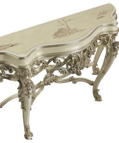 Резная консоль с четырьмя ножками. Фигурная столешница декорирована росписью. Возможны другие варианты отделки