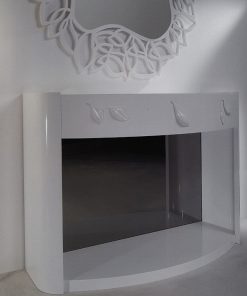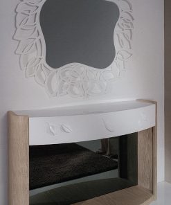 Консоль с выдвижным ящиком и зеркальной задней стенкой. Ручки выполнены в форме листочков. Возможны другие варианты отделки.