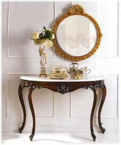 Консоль, столешница выполнена из мрамора (возможны различные варианты мрамора). Консоль декорирована резьбой ручной работы. Возможны другие варианты отделки.