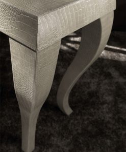 Консоль в кожаной обивке с изогнутыми ножками и прямоугольной столешницей. Возможен вариант консоли с отделке из дерева. Возможны другие варианты обивки. По запросу возможно выполнение в нестандартных размерах