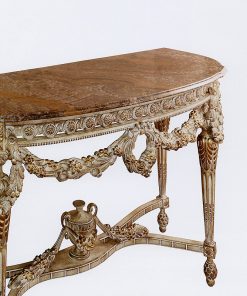 Консоль. Декорирована резьбой. Столешница выполнена из оникса. Возможны другие варианты отделки.