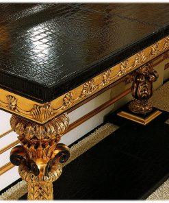 Консоль, столешница выполнена в отделке из кожи, декорирована резными элементами ручной работы. Возможны другие варианты отделки.