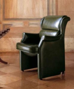 Кресло, задние ножки на колесиках. Наполнение — полиуретан. Возможны другие варианты обивки.