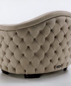 Обитое кресло с деревянными ножками. С внешней стороны обито в технике капитоне. Возможны другие варианты отделки и обивки.