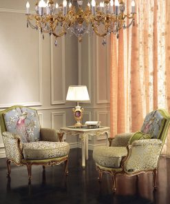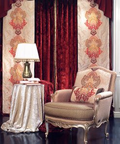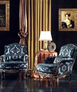 Кресло. Украшено резьбой. Возможны другие варианты отделки и обивки, в том числе в ткани клиента.