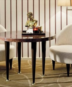 Обитое кресло с деревянными ножками. Возможны другие варианты отделки и обивки, в том числе в ткани клиента.