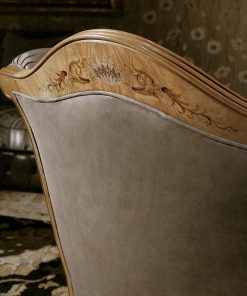 Кресло. Спинка обита в технике капитоне. Декорировано инкрустацией и росписью. Возможны другие варианты отделки и обивки, в том числе в ткани клиента.