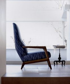 Кресло с деревянными подлокотниками, с обитыми сидением и спинкой. Возможны другие варианты отделки и обивки, в том числе в коже и ткани клиента.