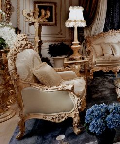 Кресло. Декорировано резьбой. Возможны другие варианты отделки и обивки.