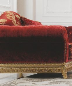 Кресло в мягкой обивке с деревянными основанием. Декорировано резьбой. Подлокотники обиты в технике капитоне. Возможны другие варианты отделки и обивки. Декоративная подушка заказывается дополнительно