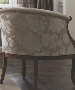 Кресло с высокими ножками. Декорировано резьбой. Возможны другие варианты отделки и обивки