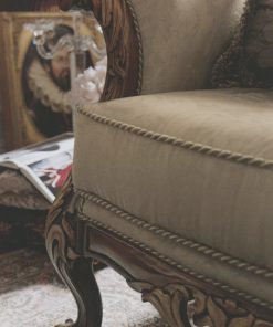 Кресло в мягкой обивке с высокими ножками. Декорировано резьбой. Возможны другие варианты отделки и обивки. Декоративная подушка заказывается дополнительно