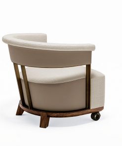 Обитое кресло на колесиках. Возможны другие варианты отделки и обивки, в том числе в ткани клиента.