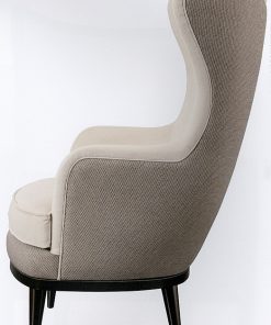 Обитое кресло с деревянным основанием. Возможны другие варианты отделки и обивки, в том числе в ткани клиента.