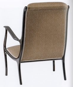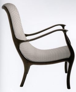 Обитое кресло с деревянными подлокотниками и ножками. Возможны другие варианты отделки и обивки, в том числе в ткани клиента.