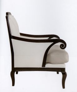 Обитое кресло с деревянными подлокотниками и ножками. Возможны другие варианты отделки и обивки, в том числе в ткани клиента.