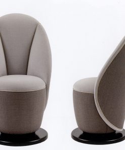 Обитое кресло с высокой спинкой, без подлокотников, с деревянным основанием. Возможны другие варианты отделки и обивки, в том числе в ткани клиента.