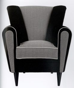 Обитое кресло на деревянных ножках. Возможны другие варианты отделки и обивки, в том числе в ткани клиента.