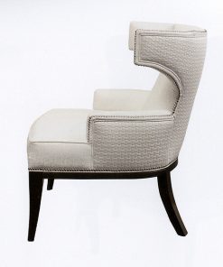 Обитое кресло на деревянных ножках. Возможны другие варианты отделки и обивки, в том числе в ткани клиента.
