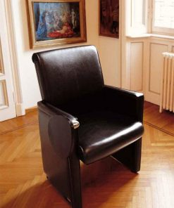 Кресло с вращающейся подставкой, расположенной на подлокотнике, задние ножки на колесиках. Наполнение — полиуретан. Возможны другие варианты обивки.