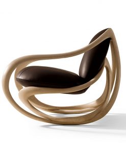 Кресло-качалка с обитыми сидением и спинкой. Возможны другие варианты отделки и обивки, в том числе в ткани клиента.