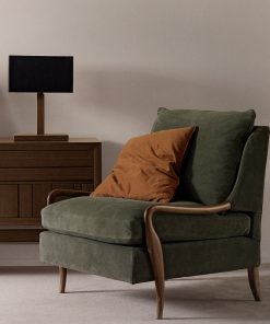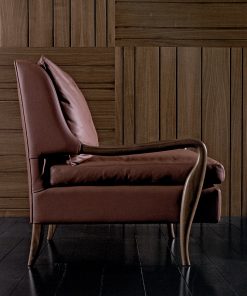 Кресло с деревянными подлокотниками, обитыми сидением и спинкой. Возможны другие варианты отделки и обивки, в том числе в коже и ткани клиента.