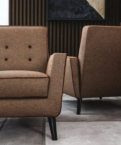 Кресло в мягкой обивке. Спинка декорирована пуговицами. Наполнение — полиуретан. Возможны другие варианты обивки