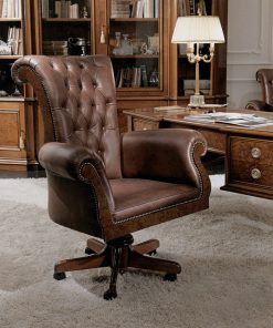 Вращающееся кресло на колесиках. Наполнение — полиуретан. Возможны другие варианты обивки и отделки.