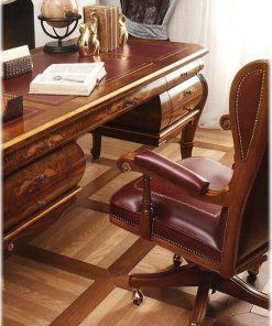Кресло на колесиках вращающееся с высокой спинкой, регулируется по высоте. Подлокотники с мягкими накладками. Наполнение — полиуретан. Возможны различные варианты отделки (ясень, клен, тюльпанное дерево, груша и т.д.) и обивки.