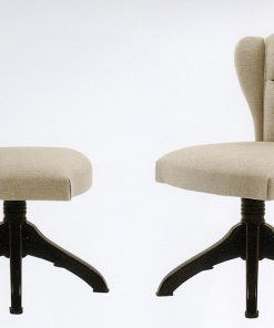 Кресло вращающееся без подлокотников, с обитым сидением. Спинка обита в технике капитоне. Максимальная высота 107 см. Возможны другие варианты обивки, в том числе в ткани клиента.