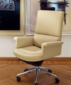 Вращающееся кресло на колесиках, регулируется по высоте. Наполнение — полиуретан. Возможны другие варианты обивки.