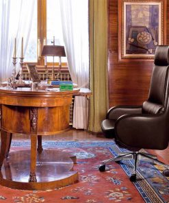 Вращающееся кресло на колесиках, регулируется по высоте. Наполнение — полиуретан. Возможны другие варианты обивки.
