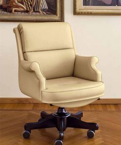 Вращающееся кресло на колесиках, регулируется по высоте. Наполнение — полиуретан. Возможны другие варианты обивки.
