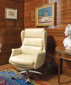 Вращающееся кресло на колесиках, регулируется по высоте. Наполнение — полиуретан. Возможны другие варианты обивки.