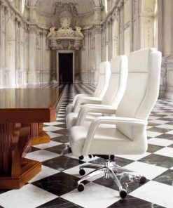 Вращающееся кресло на колесиках, регулируется по высоте. Наполнение — полиуретан. Возможны другие варианты обивки.