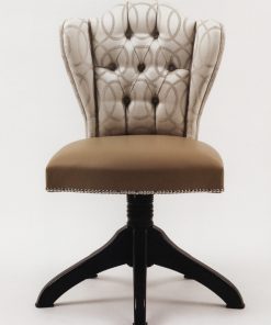Вращающееся кресло с мягким сидением и спинкой, обитой в технике капитоне. Возможны другие варианты отделки и обивки, в том числе в ткани клиента.