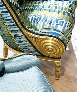 Кресло без подлокотников. Декорировано резными элементами ручной работы. Наполнение — полиуретан. Возможны различные варианты обивки и отделки.