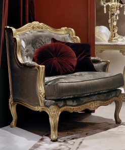 Кресло. Наполнение — полиуретан. Декорировано резными элементами. Возможны другие варианты отделки и обивки. В дополнение можно заказать декоративные подушки.