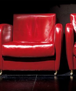 Кресло. Передние ножки на колесиках. Структура — ель, тополь, ножки — бук, крашенный в орех. Обивка — кожа, наполнение — полиуретан. Возможны различные варианты обивки
