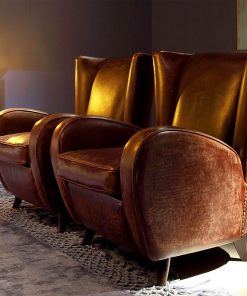 Кресло. Структура — ель, тополь, ножки — бук. Обивка — кожа, наполнение — полиуретан. Возможны различные варианты обивки