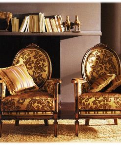 Кресло. Декорировано резьбой. Наполнение — полиуретан. Возможны различные варианты отделки и обивки.