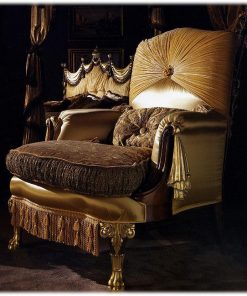 Кресло. Резные ножки и подлокотники. Наполнение — полиуретан. Возможны другие варианты отделки и обивки, в том числе выполнение в ткани клиента. Декоративная подушка включена в стоимость