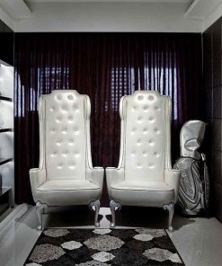 Кресло с высокой спинкой, обитой в технике капитоне. Наполнение — полиуретан. Возможны другие варианты обивки и отделки