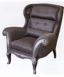 Кресло, декорировано резьбой. Наполнение — полиуретан. Возможны другие варианты обивки и отделки