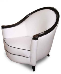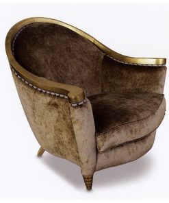Кресло, спинка плавно переходит в подлокотники, фигурные ножки. Наполнение — полиуретан. Возможны другие варианты обивки и отделки