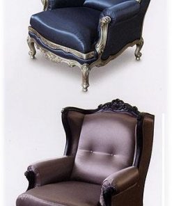 Кресло, декорировано резьбой. Наполнение — полиуретан. Возможны другие варианты обивки и отделки
